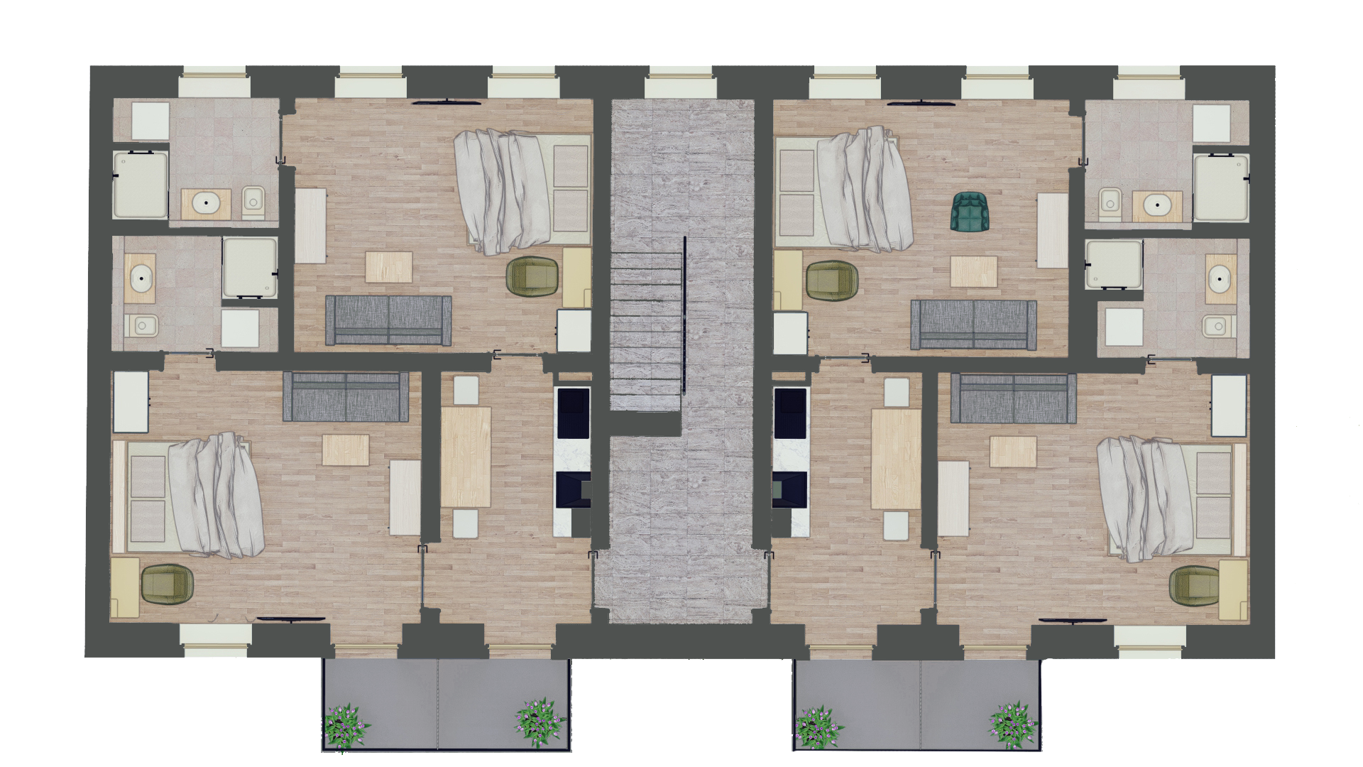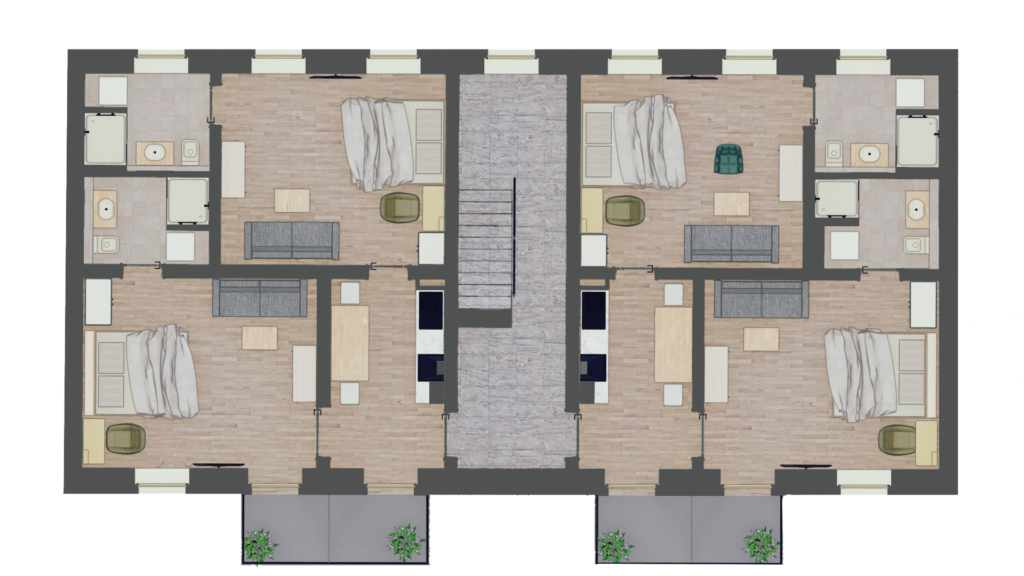 Unser Apart Luise besteht aus zwei gegenüberliegenden Häuser, die mit einem begrünten Innenhof verbunden sind. Auch genannt „Altes Schätzchen“ steht für ein Grundsaniertes Haus mit Denkmalschutz und „Neues Schätzchen“ für einen modernen Neubau.